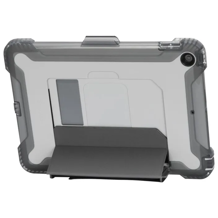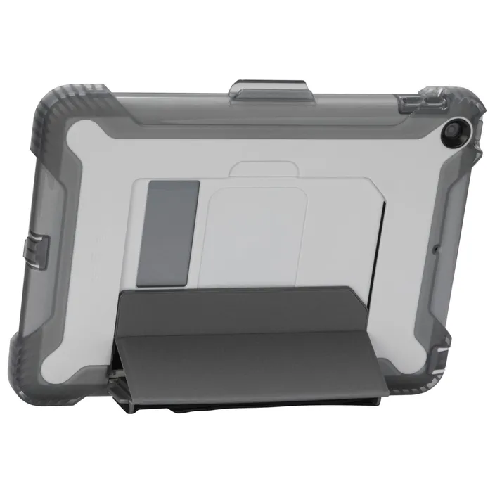 Eine stoßabsorbierende, geformte TPU-Hülle bietet fortschrittlichen Schutz vor plötzlichen Stürzen und rauen Umgebungsbedingungen, während ein integrierter, rahmenloser Bildschirmschutz das Gerät dort schützt, wo es am anfälligsten ist. In das Gehäuse um die Gerätelautsprecher eingebaute Klangschaufeln verstärken und lenken den Schall zu Ihnen. Für zusätzliche Vielseitigkeit verfügt die Tasche über einen integrierten verschiebbaren Ständer für das Betrachten und Tippen im Querformat sowie über einen optionalen, abnehmbaren Hand- und Schulterriemen.