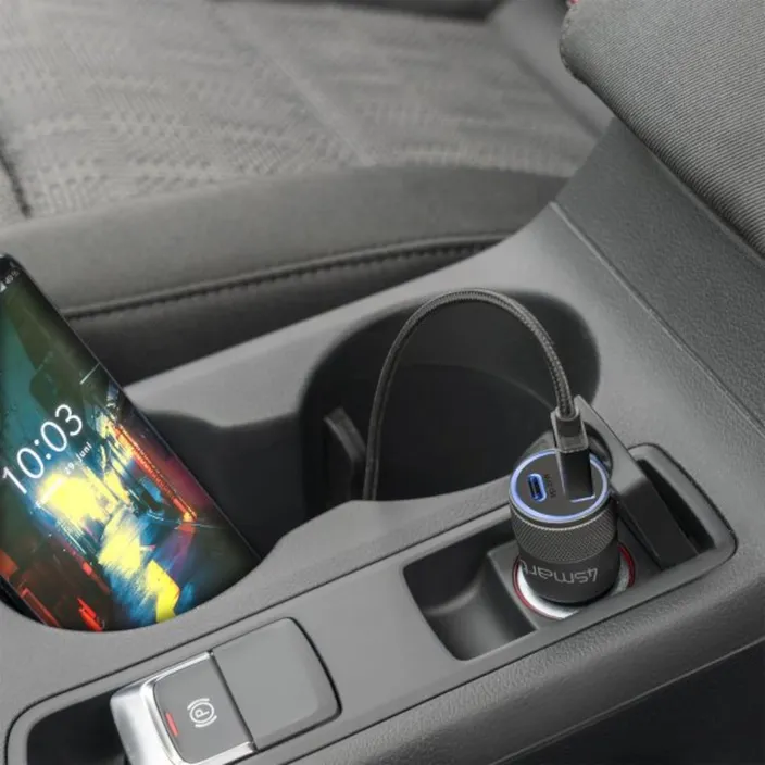 Extra schnelle Ladegeschwindigkeit auch für unterwegs. Dieses duale KFZ-Ladegerät ermöglicht gleichzeitiges, effizientes Laden für Smartphones und Tablets mit Power Delivery und Quick Charge 3.0.