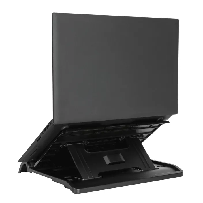Der Ständer ermöglicht 3 komfortable Aufstellwinkel für den Laptop ( 33,5°, 38°, 42,5° ); Verfügt über den antimikrobiellen Schutz - DefenseGuard; Rutschfeste Elemente vermeiden das Verrutschen des Laptops; Lässt sich flach zusammenfalten, leicht wegräumen und ist leicht genug für unterwegs; Die Kabelführung an der Rückseite des Ständers sorgt für Ordnung; Geeignet für Laptops jeder beliebigen GrößeReduzieren Sie Nacken- und Augenbelastungen mit dem tragbaren ergonomischen Laptop/Tablet-Ständer, der Ihr Gerät in eine optimale Position für die tägliche Arbeit bringt. Das verstellbare Design unterstützt sechs verschiedene Höhenoptionen, um einen komfortablen Betrachtungswinkel für nahezu jede Umgebung zu liefern.