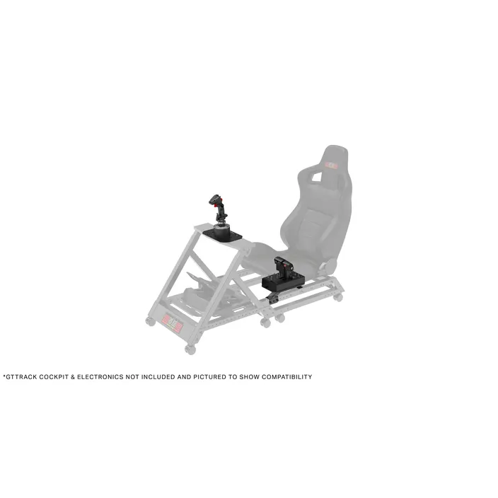 Verwandeln Sie Ihr F-GT oder GTtrack Racing Simulator Cockpit in den ultimativen Flugsimulator. In weniger als 10 Minuten kann der Benutzer den Flug-Joystick und den Throttle auf jeder Seite seines Sitzes oder den Joystick in der Mitte montieren. Mit allen gängigen Marken, einschließlich Logitech®/Saitek®, Thrustmaster® und CH-Produkten kompatibel, kann der Benutzer seine Elektronik mühelos montieren.