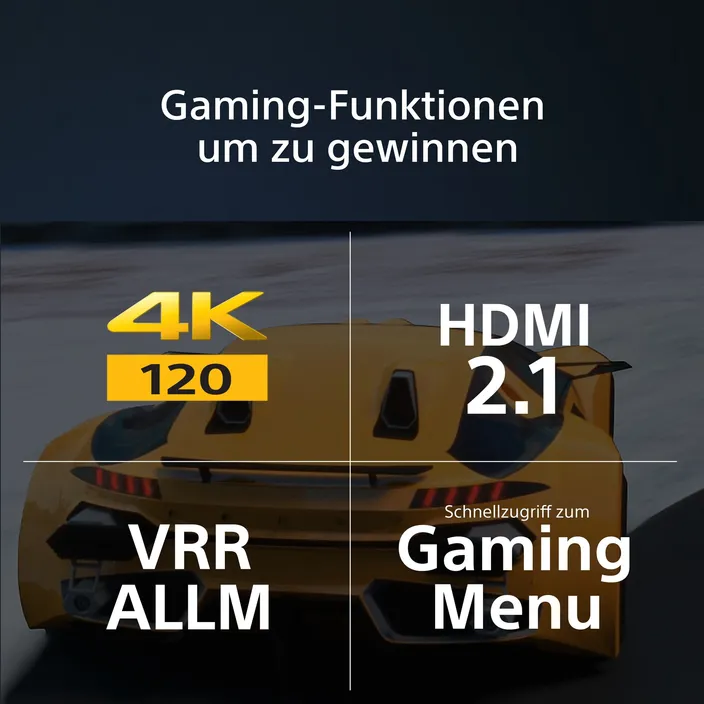 4 HDMI-AnschlüsseHDMI 2.0 Anschluss integriertHDMI 2.1 Anschluss integriertAudio Return Channel2 USB-AnschlüsseEthernet (LAN)WLAN fähigBluetooth-Anschluss1 CI+ Slot(s)Kopfhörerausgangoptischer Digitalausgang