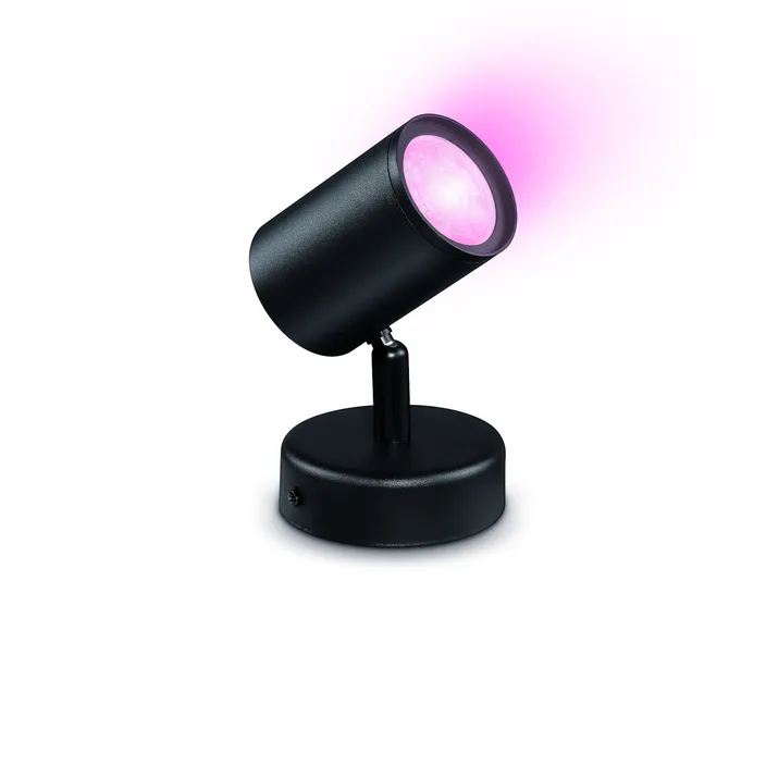 Mit ihrem einstellbaren Spot und smarten Farblicht eignet sich die smarte Spotleuchte WiZ Imageo in Schwarz hervorragend zur Hervorhebung des Dekors in Deinem Zuhause. In Verbindung mit dem vorhandenen WLAN kann sie über die WiZ App oder per Stimme gesteuert werden.