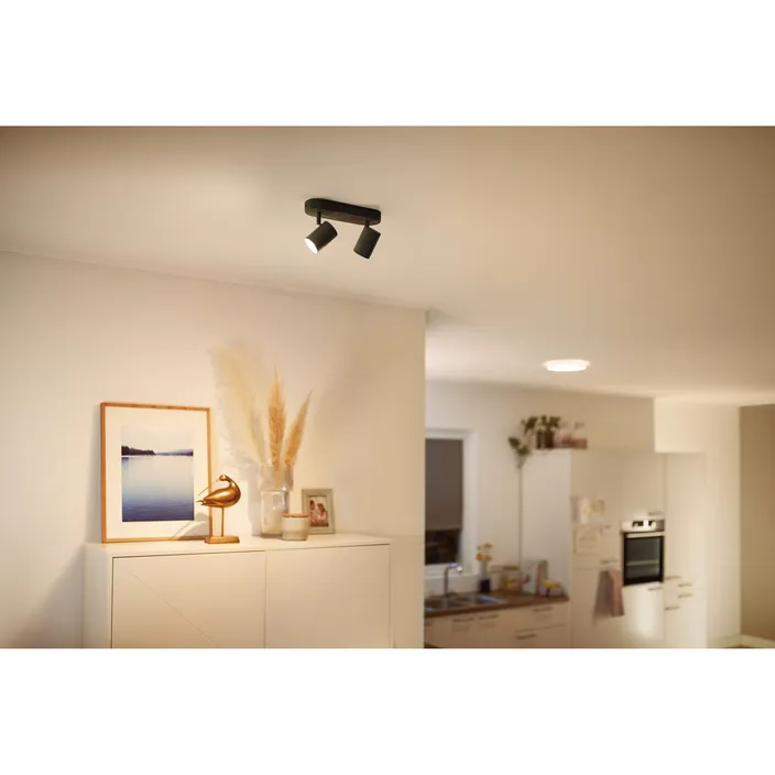 Die smarte Spotleuchte WiZ Imageo in Schwarz bietet ein zeitgemäßes Design und ein warm- oder kaltweißes Licht. Sie verfügt über zwei einstellbare Spots, mit denen Du Deinen Raum auf intelligente Weise beleuchten kannst. In Verbindung mit dem vorhandenen WLAN kann sie über die WiZ App oder per Stimme gesteuert werden.