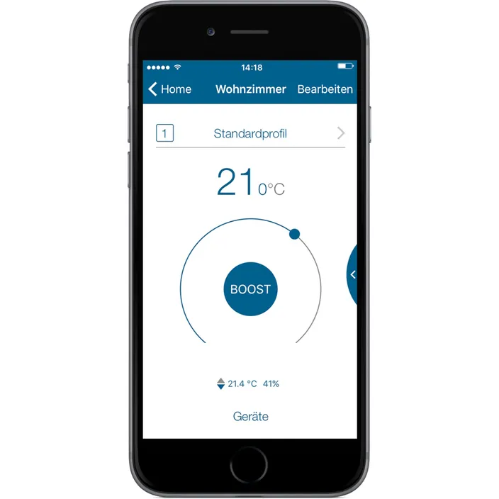 Manuelle Bedienung: Temperaturänderungen und Auslösen der Boost-Funktion (schnelles Aufheizen des Heizkörpers) direkt am Gerät möglich.