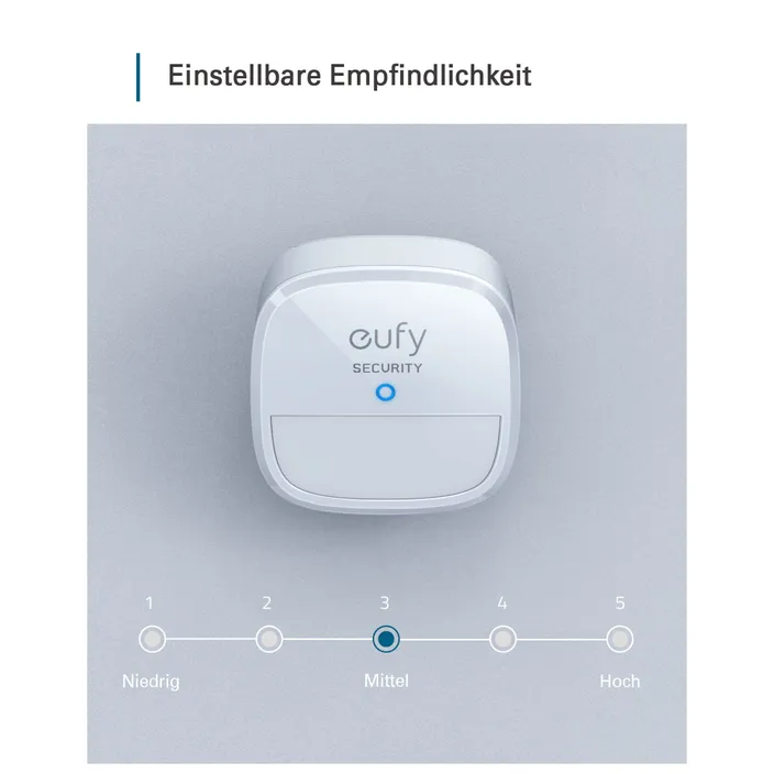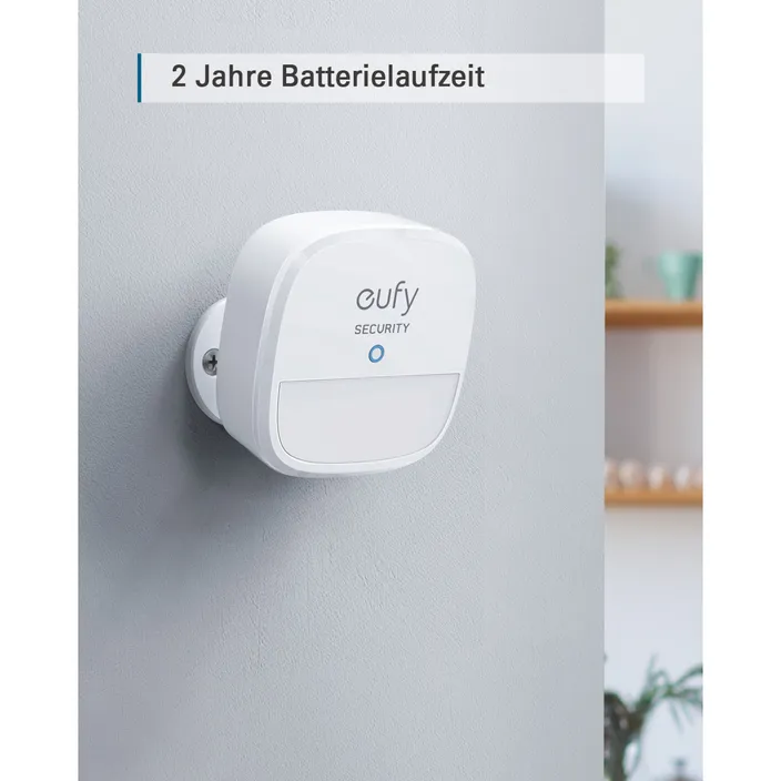 Bewegungsmelder, eufy Security Home-Alarmsystem Bewegungsmelder, Abdeckung: 100 Grad, Erfassungsbereich: ca. 9 Meter, Akkulaufzeit: 2 Jahre, einstellbare Empfindlichkeit (HomeBase erforderlich)