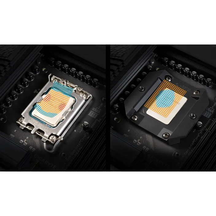 Intels Independent Loading Mechanism (ILM) verformt die CPU, indem er sie an zwei Punkten mit über 40 kg in den Sockel drückt. Dies führt zu Spannungen in der Leiterplatte, dem Die und der Lötschicht zwischen Die und IHS (Integrated Heat Spreader). Bei hoher thermischer Belastung kann dies auf Dauer zu Problemen führen. Der zum Patent angemeldete Montagerahmen von ARCTIC verformt die CPU nicht, reduziert die mechanische Belastung der CPU massiv, ist schnell und einfach zu montieren und ermöglicht die Verschraubung des Kühlers auf der Backplate der CPU. Das Resultat ist eine minimale mechanische Belastung von Mainboard und CPU, gleichbleibende Kühlleistung und eine zügige sowie unkomplizierte Montage.