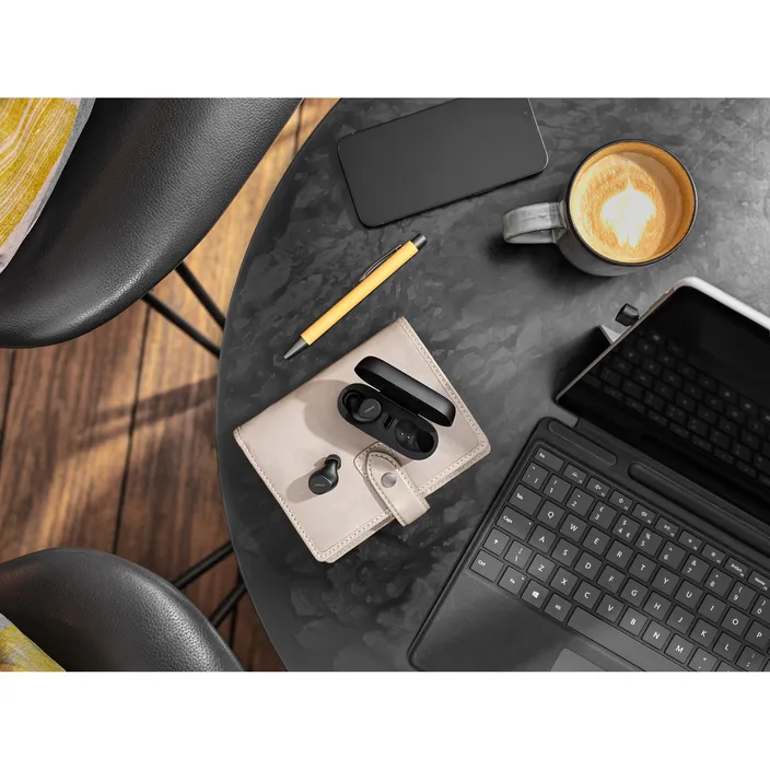Die überzeugende Kombination aus passgenauem, geräuschisolierendem Sitz und aktiver Geräuschunterdrückung (ANC) hilft dir dabei, einen ruhigen Moment zu finden, wann (und wo) immer du ihn brauchst. Nutze die MyFit-Funktion in der Jabra Sound+ App, um die optimale Passform für bestmögliche ANC-Leistung zu finden. Damit kannst du konzentriert arbeiten.