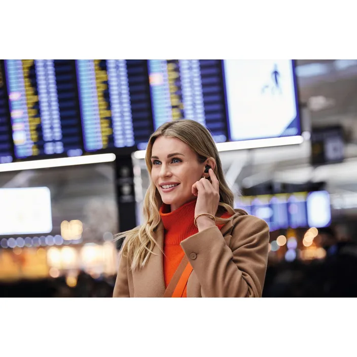Wenn du unterwegs berufliche Anrufe entgegennimmst, können viele Hintergrundgeräusche zu hören sein. Jabra MultiSensor Voice™ nutzt die smarte Kombination aus vier Mikrofonen, Bone-Conducting-Sensoren (Knochenschall) und fortschrittlichen Algorithmen, um störende Hintergrundgeräusche zu filtern. Damit stehen dir viel mehr Möglichkeiten zur Verfügung, von wo aus du den nächsten Anruf entgegennehmen kannst.