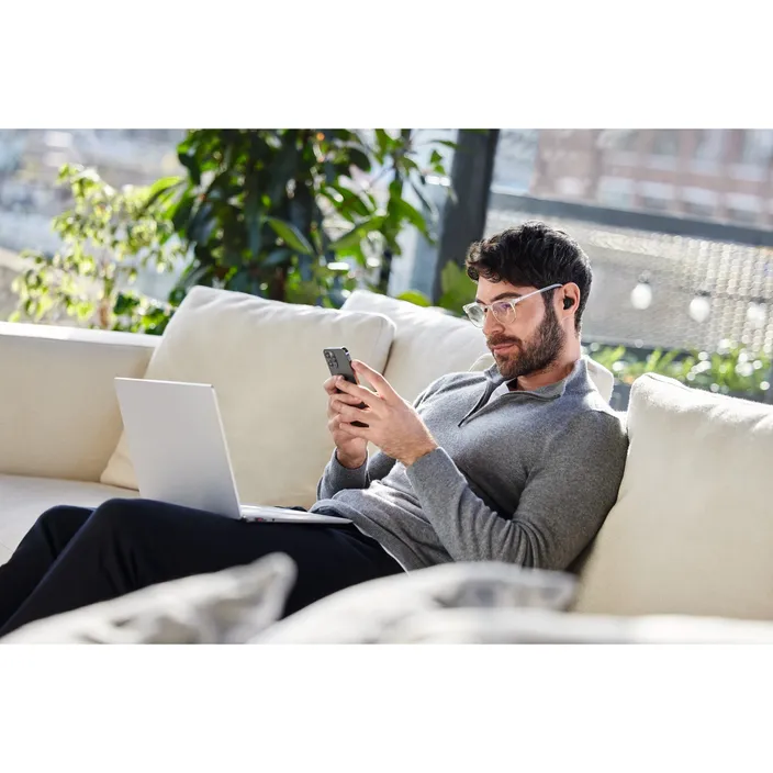 Wenn du an verschiedenen Standorten arbeitest, bedeutet das, dass du mit mehreren Geräten jonglieren musst. Mit Advanced Bluetooth Multipoint kannst du gleichzeitig mit deinem Laptop und deinem Smartphone verbunden sein – ganz einfach. Damit bist Du immer erreichbar.