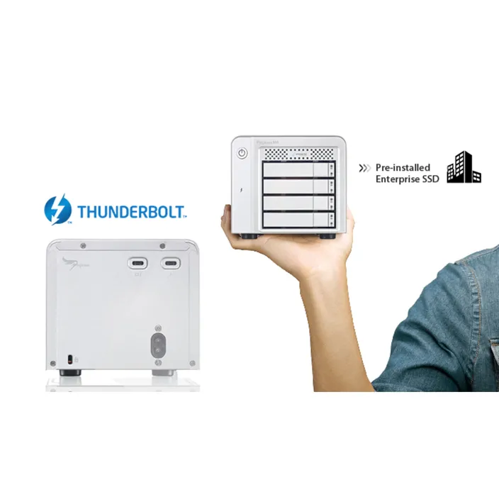 Der Pegasus M4 kombiniert die robuste PromiseRAID-Engine - bekanntfür Stabilität und hohe Leistung - mit dem hohen Thunderbolt™-Durchsatz in einem kompakten SSD-Gehäuse mit vier Einbauschächten. Der M4 eignet sich perfekt für kreative Medienprofis unterwegs.