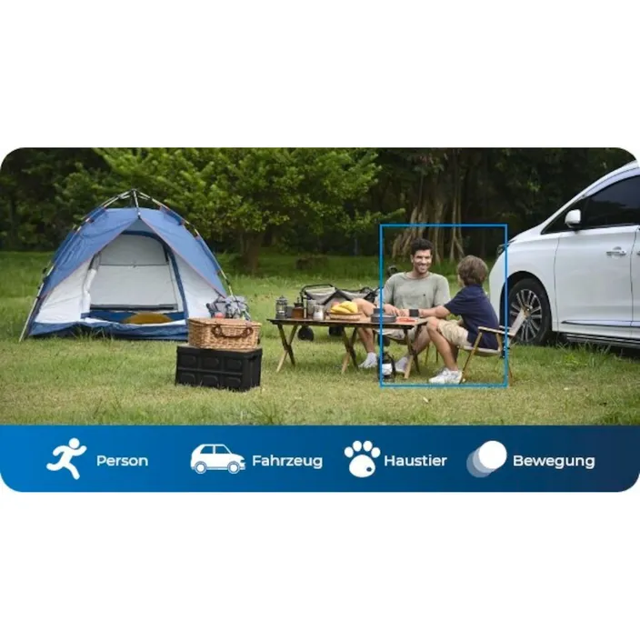 Die fortschrittliche Personen-/Fahrzeug-/Tiererkennung ermöglicht präzise Benachrichtigungen über wichtige Aktivitäten, ohne von unwichtigen Ereignissen gestört zu werden. Diese Kamera ist darauf ausgelegt, Ihre Sicherheit zu maximieren und dennoch einfach zu bedienen zu sein.