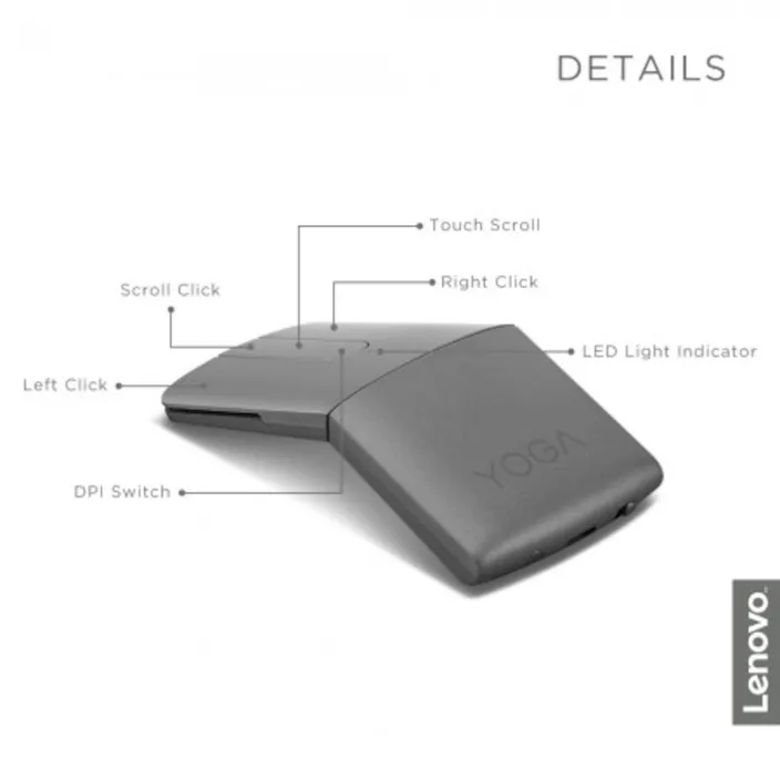 - LieferumfangLenovo Yoga MouseKabelloser Empfänger (USB)Ladekabel