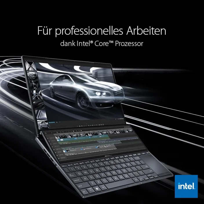 Das Zenbook Pro 14 Duo OLED kombiniert einen leistungsstarken bis zu Intel® Core™ i9 13900H Prozessor mit der innovativen NVIDIA® GeForce RTX™ 4060 GPU für eine unschlagbare Grafikqualität und High End-Technik für anspruchsvolle Masterminds. Blitzschnell arbeiten mit der Speicherkapazität von bis zu 32 GB RAM und bis zu 2 TB SSD Power sowie einer ausdauernden Akkulaufzeit. Ausgestattet mit dieser Power bringt das Zenbook Pro 14 Duo OLED alles mit, um Ideen an jedem Ort uneingeschränkt und in höchster Qualität umsetzen zu können.