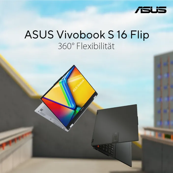 Der Full-HD (1920x1200) Display sorgt für ein glasklares Bild auf dem Vivobook S 16 Flip. Im 16:10 Format bietet das Notebook mehr Raum für Inhalte. Mit einer Spitzenhelligkeit von 300 Nits und einem Screen-to-Body Verhältnis von 85% hat man alles im Blick. Die Touch-Funktion und die Kompatibilität mit dem ASUS Pen 2.0 bieten zusätzlich enorme Möglichkeiten der direkten Interaktion mit Apps oder Spielen.