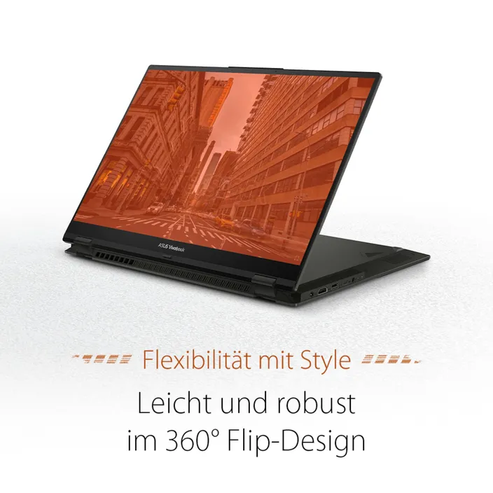 Ein schneller Computer bedeutet auch schnelleres Umsetzen deiner Projekte. Der leistungsstarke bis zu AMD Ryzen™ 7 7730U Prozessor bringt dir starke Power in allen Lebenslagen. Auch das Verschieben von Dateien ist nur noch eine Sache von Sekunden, denn die PCIe Gen3 M.2 SSD mit bis zu 1TB kann Daten in Windeseile verarbeiten. Und dank einer schnellen Internetverbindung mit Wi-Fi 6E und Bluetooth® 5 bleibt man immer und überall vernetzt. Das gesamte Paket des Vivobook S 16 Flip wird durch den bis zu 50Wh starken Akku abgerundet, der auch bei längerer Nutzung eine ausdauernde Leistung bietet.