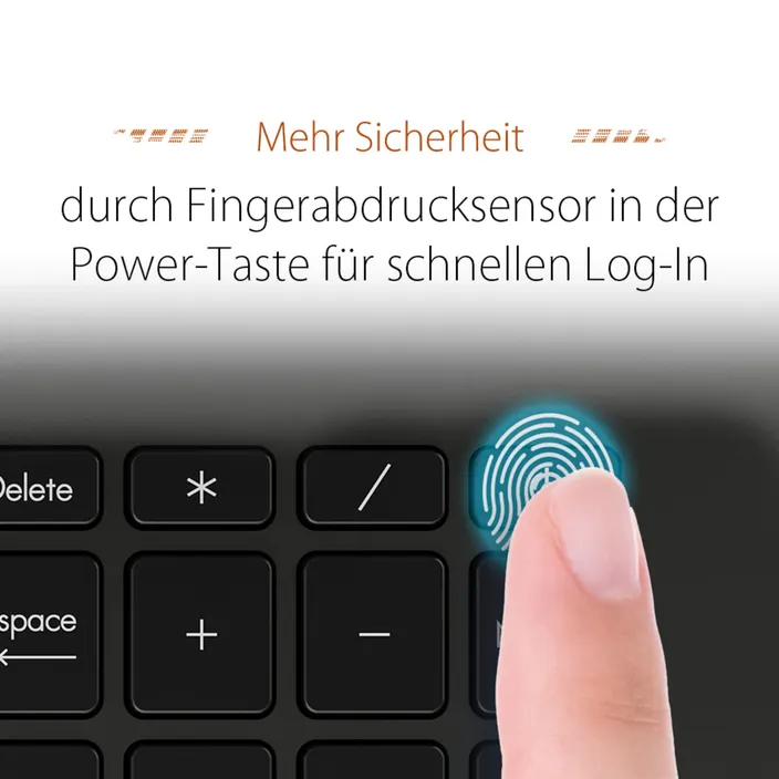 - Eingabekomponentenbeleuchtete Chiclet Tastatur, mit ZiffernblockTouchpadFingerprint-SensorSofern nicht anders angegeben, werden Notebooks mit deutschem Tastaturlayout (QWERTZ) geliefert. Die Produktbilder können ein abweichendes Layout zeigen.