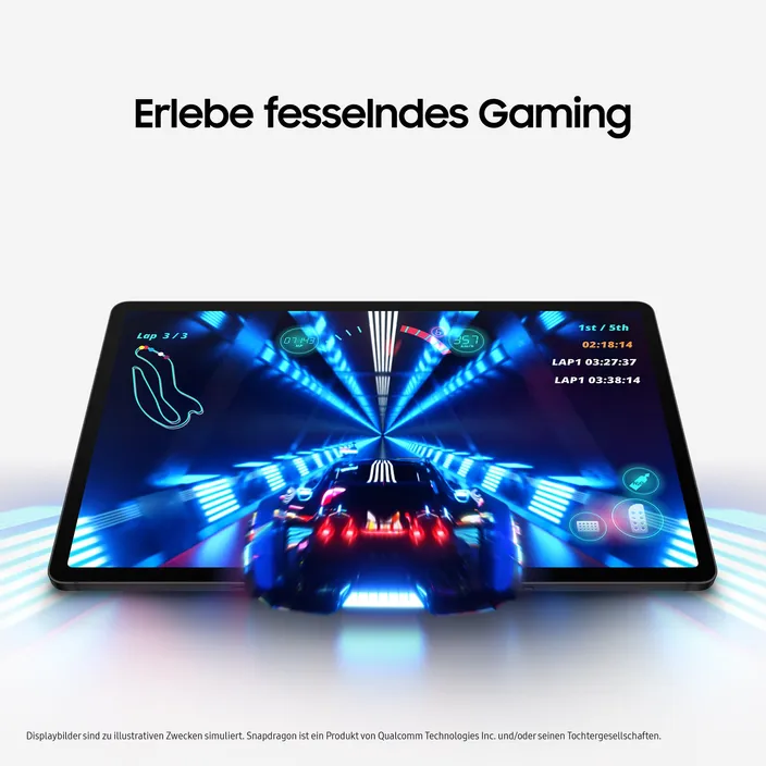 - DisplayGröße: 36,99 cm / 14,6“ (volles Rechteck), 36,72 cm / 14,5“ (innerhalb Abrundungen)Technologie: Dynamic-AMOLEDBildwiederholrate: Standard (60 Hz) / Adaptiv (bis zu 120 Hz)Auflösung: 2.960 x 1.848 Pixel (WQXGA+)Pixeldichte: 240 ppiMax. Helligkeit: 420 NitsFarben: 16 MillionenBesonderheiten: Dark Mode, Adaptive Helligkeit, Augenkomfort, Bildschirmschoner, Bildschirmzoom, Bildschirmrecorder, Multitouch, Seiten-Paneele, Symbolleiste