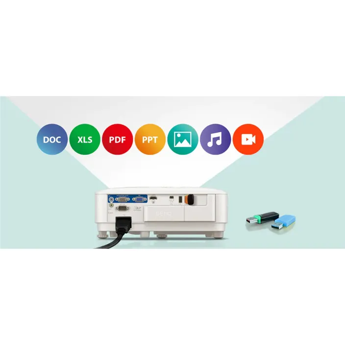 Dank des USB Typ-A-Anschlusses des EW800ST wird der Abruf und die Anzeige einer Vielzahl von Dateiformaten wie JPEG, PDF, Microsoft Word, Excel, PowerPoint und vielem mehr unterstützt. Übertragen Sie Bilder und Dokumente einfach direkt auf die Leinwand - ein Steuerungs-PC ist nicht mehr notwendig.