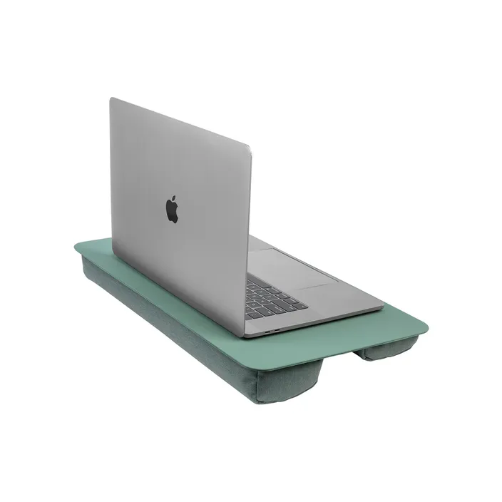 Laptop Kissen für relaxtes Arbeiten auf dem Sofa oder im Bett. Das Kissen ist leicht und luftig und liegt bequem auf. Durch die unterschiedliche Dicke der beiden Kissen auf der Unterseite der Arbeitspaltte wird ein angenehmer Arbeitswinkel erzeugt, der für eine ergonomische Arbeitshaltung und mehr Komfort sorgt. Die stabile Arbeitsplatte aus Fiberglas ist mit einer rutschhemmenden Oberfläche versehen und leicht zu reinigen.