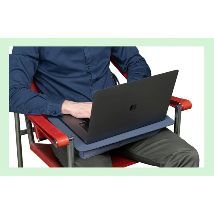 Laptop Kissen für relaxtes Arbeiten auf dem Sofa oder im Bett. Das Kissen ist leicht und luftig und liegt bequem auf. Durch die unterschiedliche Dicke der beiden Kissen auf der Unterseite der Arbeitspaltte wird ein angenehmer Arbeitswinkel erzeugt, der für eine ergonomische Arbeitshaltung und mehr Komfort sorgt. Die stabile Arbeitsplatte aus Fiberglas ist mit einer rutschhemmenden Oberfläche versehen und leicht zu reinigen.
