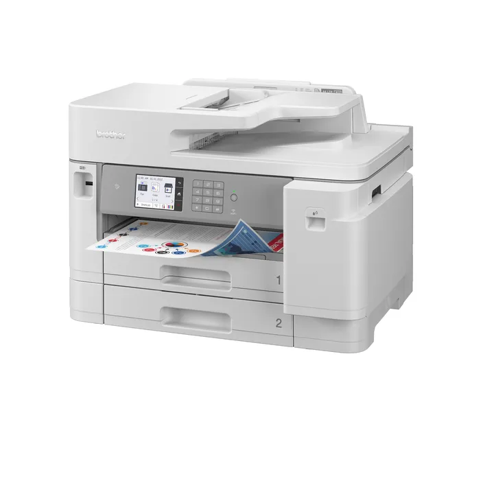 - DruckerDruckmethode:Piezo-Technologie, 4 separat auswechselbare TintenpatronenDruckgeschwindigkeit ISO:Bis zu 30 Seiten/Min. S/Wund 30 Seiten/Min. in Farbegemäß ISO/IEC 24734Druckgeschwindigkeit (Duplex):Bis zu 21 Seiten/Minute in S/Wund in Farbe (10,5 Blatt/Minute)Erste ausgedruckte Seite:Erste Seite S/W in 4,4 Sek. und4,6 Sekunden in FarbeDruckauflösung:Bis zu 1.200 x 4.800 dpi (horizontal x vertical)Duplexdruck:Automatischer Duplexdruck (bis zu DIN A4)Druckersprachen:PCL6, BR-Script3, PDF Version 1.7, XPS Version 1.0Funktionen:N-auf-1 Druck 2, 4, 9 oder 16 A4-Seiten auf eine A4-Seite verkleinernPoster-Druck 1 A4-Seite auf 4 oder 9 A4-Seiten vergrößernBroschürendruck (Windows) Zum Drucken von DIN A4-Dokumenten als DIN A5-Broschüre mit dem automatischen oder manuellen DuplexdruckWasserzeichendruck (Windows)