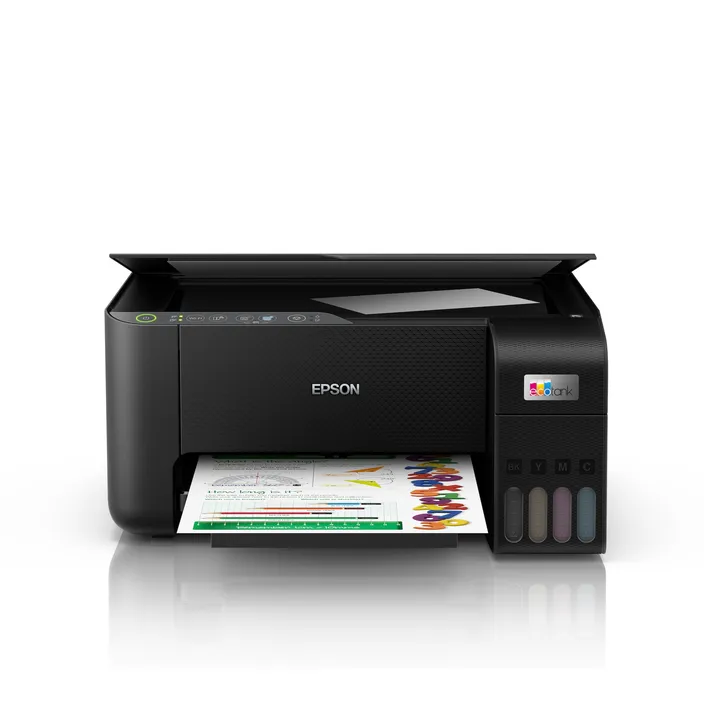 EcoTank ermöglicht komfortables Drucken zu Hause. Die großvolumigen Tintentanks ermöglichen ein unkompliziertes Nachfüllen. Da die Tintenflaschen über ein Schlüssel-Schloss-Prinzip funktionieren, kann nur die jeweils richtige Tinte eingefüllt werden. An der vorderen Tintenfüllstandsanzeige können Sie leicht erkennen, wann Sie den Drucker nachfüllen müssen.