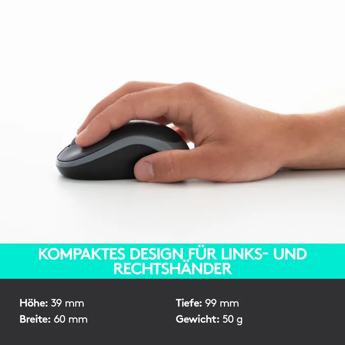 • Maus (Länge x Breite x Höhe): 60 x 99 x 39 mm