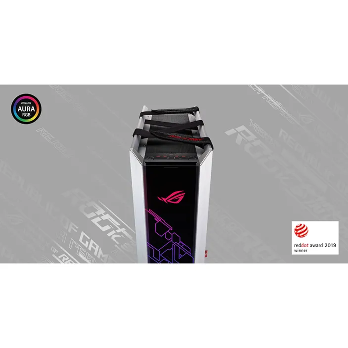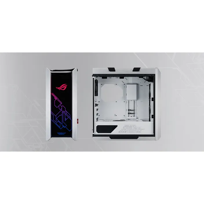 Das ROG Strix Helios ist ein hochwertiges Gaming-Gehäuse mit drei Fenstern aus gehärtetem Glas, einem veredelten Aluminiumrahmen und integrierter RGB-Beleuchtung auf der Vorderseite. Das integrierte Kabelmanagement, einschließlich einer Multifunktionsabdeckung mit GPU-Halterungen, sorgt für einen aufgeräumten und übersichtlichen Innenraum. Da das Gehäuse für Erweiterbarkeit und Performance ausgelegt ist, bietet es Platz für ein Mainboard mit bis zu EATX-Formfaktor und eine leistungsstarke Wasserkühlung – das macht es zur perfekten Wahl für ein klassisches ROG-Showcase-System.