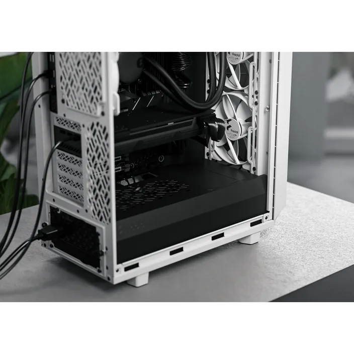 Das Meshify 2 Compact Lite ist ein High-Performance Gehäuse mit einem markanten, eleganten Mesh-Design und schraubenlosem Tempered Glass Seitenteil. Durch den intelligent strukturierten Innenraum bietet das Meshify 2 Compact Lite trotz eines erstaunlich kompakten Formats die Leistung und die Kapazität eines deutlich größeren Gehäuses, sodass hervorragende Kühlung und ein herausragender Airflow möglich sind.