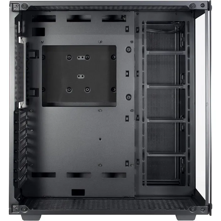 Das C-701 Panorama ist das perfekte Show-Case um seine Hardware in Szene zu setzen. Durch die großflächige Frontblende aus Tempered Glass sowie das ebenfalls großflächige Tempered Glass Seitenteil, bietet das Gehäuse, wie der Name schon verrät, einen großartigen Einblick in das Innere - sowohl von Vorne als auch von der Seite. Die 9 Einbauplätze für 120mm Lüfter lassen ausreichend Gestaltungsfreiheit, wie und ob der Innenraum beleuchtet oder wahlweise mit einer AiO-Wasserkühlung in den Größen 120mm, 240mm oder 360mm bestückt werden soll.