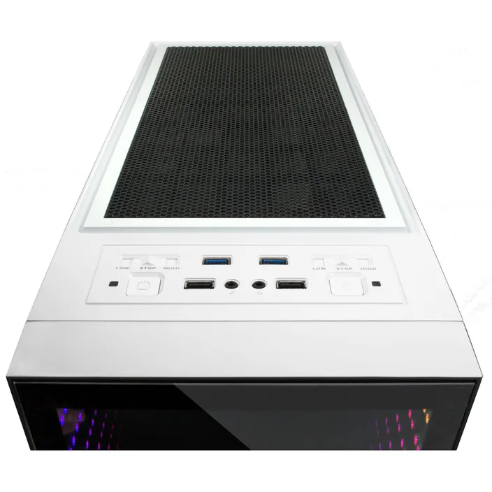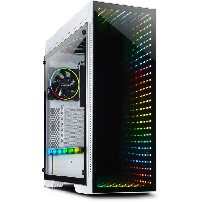 Durch das Tempered Glass der Frontblende wird der Unendlichkeitsspiegel in Szene gesetzt und bietet so Einblicke in die Tiefen der optischen Täuschung. Ein weiteres Highlight ist das 4mm starke Tempered Glass Seitenteil, das zusätzlich die verbaute Hardware in Szene setzt. Durch den seitlich angebrachten RGB-LED Umschalter lasen sich einfach und bequem alle vorprogrammierten Effekte und Farben durchschalten. Mit dem 3Pin RGB-Header Anschluss für 5V RGB-Mainboardsteuerungen und passender Mainboardsoftware, lassen sich zudem alle RGB-LEDs einzeln ansteuern (adressierbare RGB-LEDs).