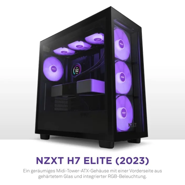 NZXT H7 Elite Black 2023 RGB Midi Tower ATX Gaming Gehäuse mit Glasfenster
