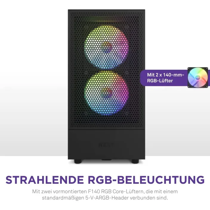 Mit zwei vormontierten F140 RGB Core-Lüftern, die mit einem standardmäßigen 5-V-ARGB-Header verbunden sind.