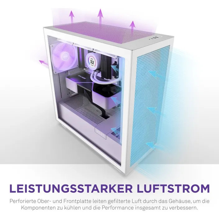 Perforierte Ober- und Frontplatte leiten gefilterte Luft durch das Gehäuse, um die Komponenten zu kühlen und die Performance insgesamt zu verbessern.