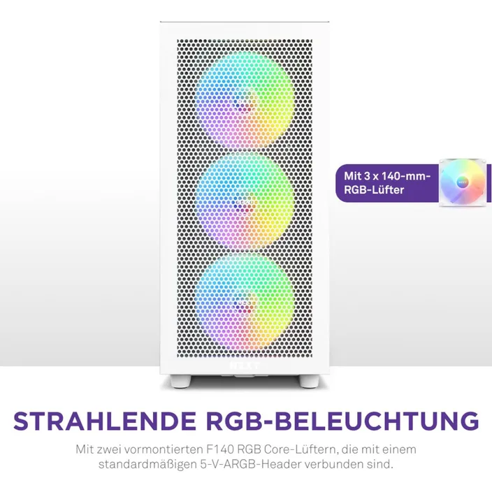 Mit zwei vormontierten F140 RGB Core-Lüftern, die mit einem standardmäßigen 5-V-ARGB-Header verbunden sind.
