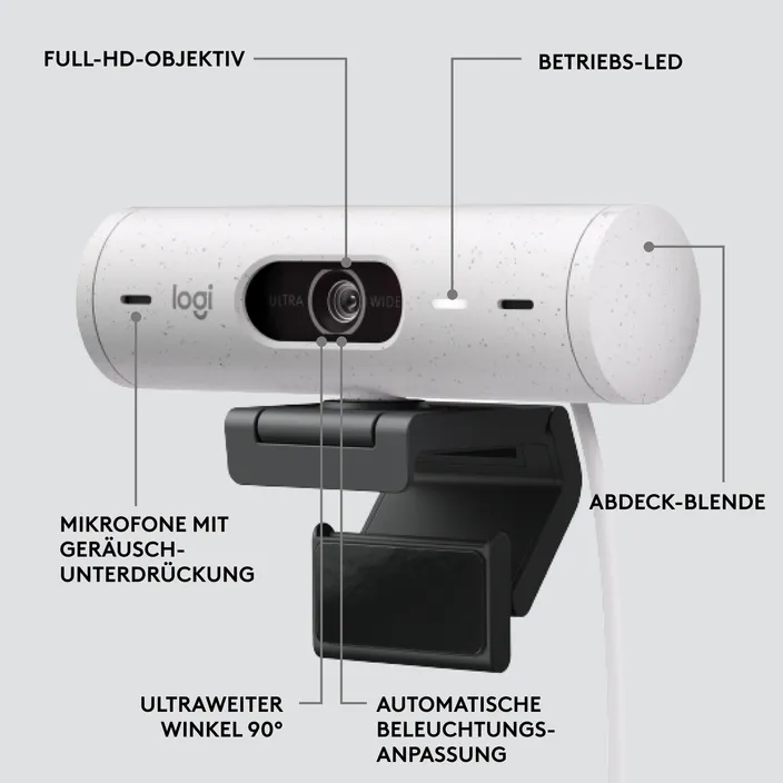 Logitech Brio 500 Full HD USB-C Webcam, Off-White