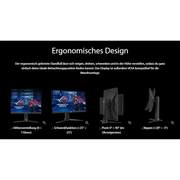 - Die ASUS Fast IPS-Technologie ermöglicht eine Reaktionszeit von 1 ms (GTG) für scharfe Gaming-Grafiken mit hohen Bildraten