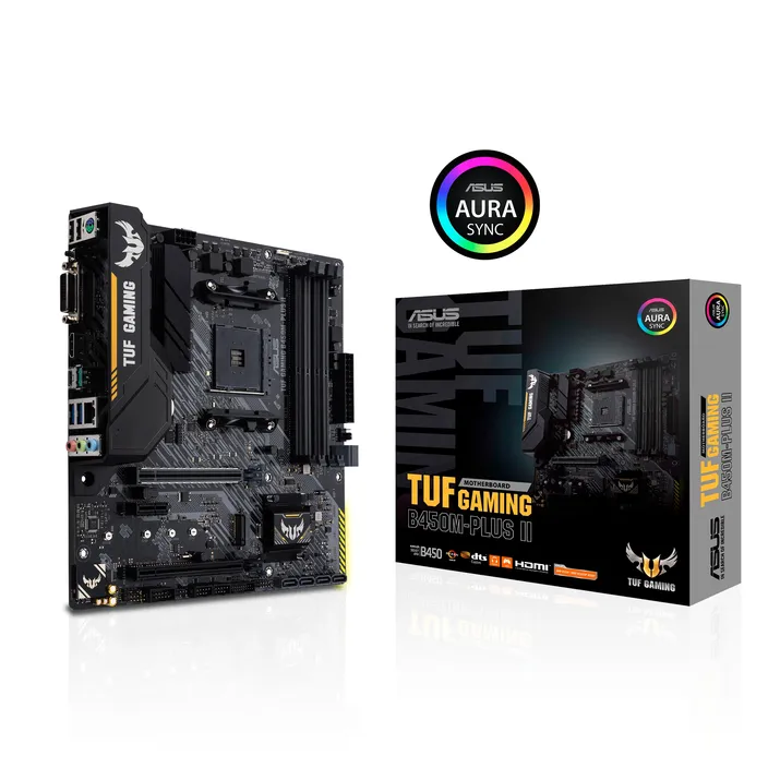 Asus TUF Gaming B450M-Plus II Mainboard Sockel AM4 (mATX, AMD Ryzen, DDR4-Speicher, M.2, USB 3.1 Gen1+ Gen2, Aura Sync, Ai Noise Cancelling Mikrofon)
