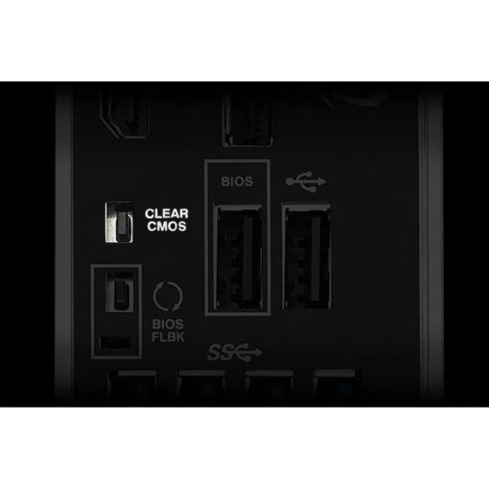 Die Taste CMOS löschen setzt die BIOS-Einstellungen schnell auf die Werkseinstellungen zurück. Sie kann auch verwendet werden, um den PC neu zu starten, wenn falsche BIOS-Einstellungen gewählt wurden.