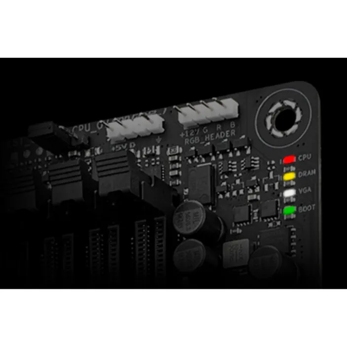 Vier Onboard-LEDs zeigen den Energiestatus an und identifizieren Probleme mit CPU, Speicher, Grafikkarte oder Boot-Gerät für eine schnelle Diagnose.
