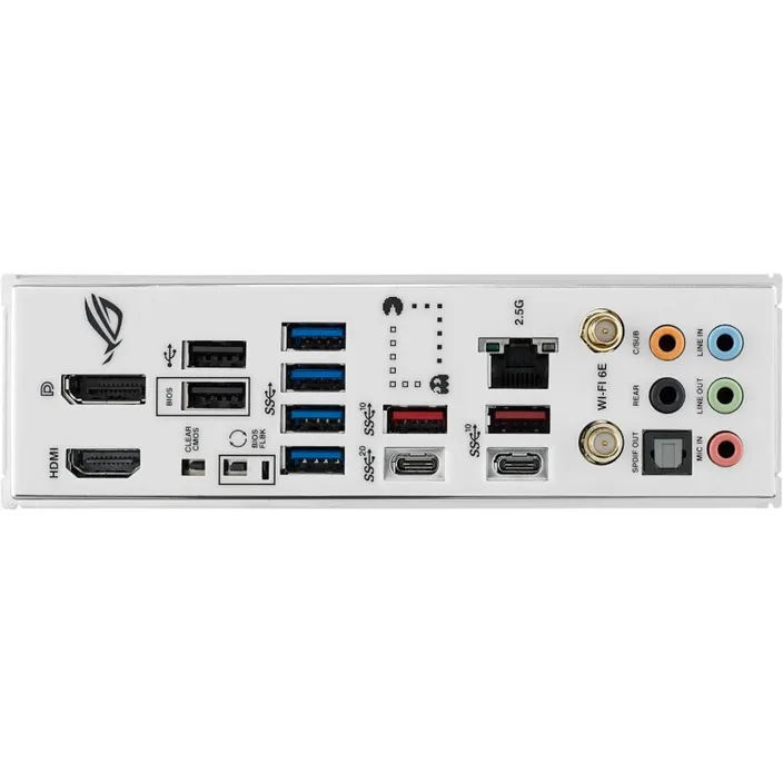 Das ROG Strix Z790-A setzt auf Licht und bietet damit eine Alternative zu seinem dunklen und finsterern Bruder, dem Strix Z790-F. Silberne Metallkühlkörper heben sich vom dunklen PCB-Hintergrund ab und machen auf die hohe Kapazität des Boards im Wärmemanagement aufmerksam. Eine transparente Schicht auf dem I/O-Shield verleiht dem Ganzen einen einzigartigen Touch und hebt das anpassbare RGB-Logo darunter hervor. Das gesamte Design ist mit ROG-zentrierten Details auf dem Board, den Kühlkörpern und dem I/O-Shield versehen, die für ein lebendiges und futuristisches Aussehen sorgen. Kombiniere das Strix Z790-A mit anderen Produkten aus dem vielfältigen ROG-Ökosystem, um ein vollständig angepasstes Gaming-Setup zu erstellen, das deinen persönlichen Stil widerspiegelt.​