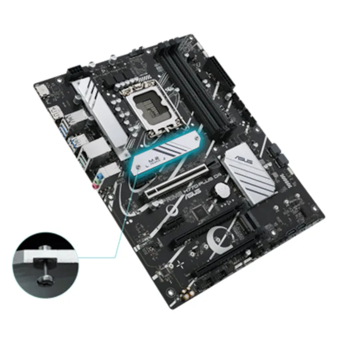 Das PRIME H770-PLUS D4 bietet insgesamt drei M.2-Steckplätze, die Datenübertragungsgeschwindigkeiten von bis zu 64 Gbit/s über PCIe 4.0 unterstützen und so schnellere Boot- und Ladezeiten für Betriebssysteme oder Anwendungen ermöglichen.