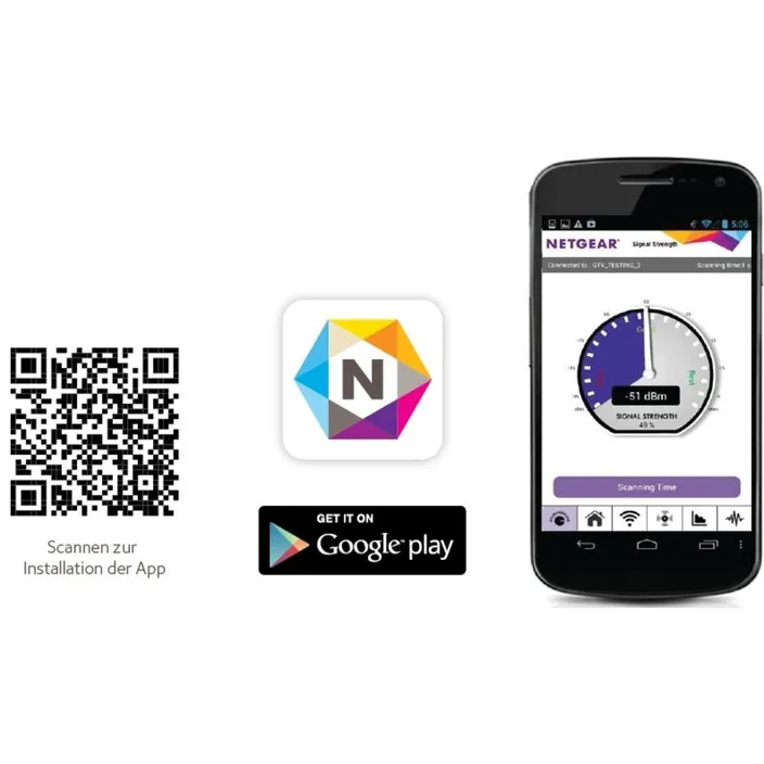 Wie stark ist Ihr WLAN-Signal? Nutzen Sie die NETGEAR® WLAN-Analyse-App, um anhand der Analysedaten Ihr bestehendes oder neu erweitertes WLAN-Netzwerk zu optimieren. Überprüfen Sie Ihren Netzwerk-Status sowie die WLAN-Signalstärke und identifi zieren Sie überbelegte WLAN-Kanäle und vieles mehr!