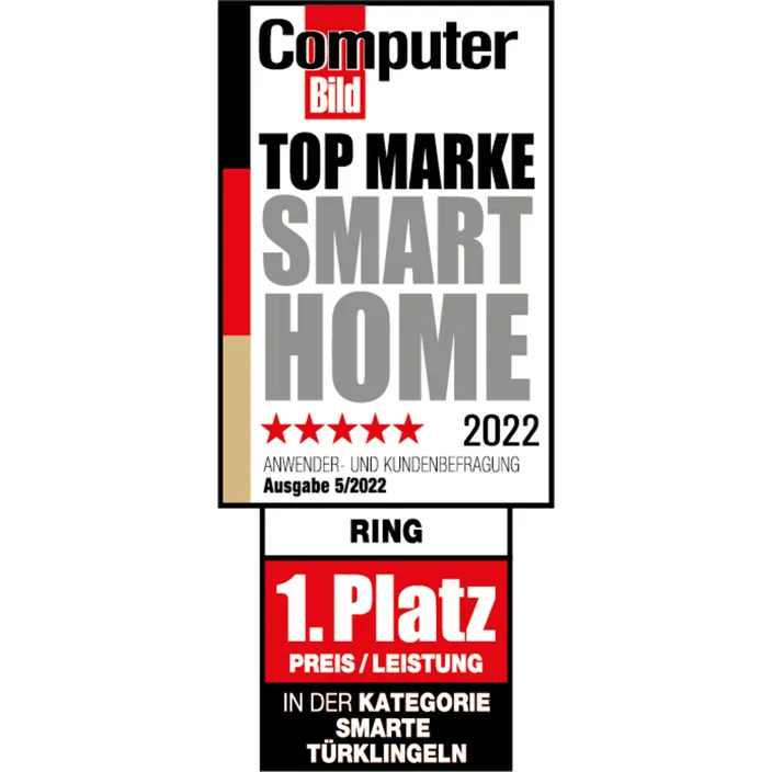 - LieferumfangRing Video Doorbell (2. Generation)Micro-USB-LadekabelMontagehalterungInstallationswerkzeugeBenutzerhandbuchSicherheitsaufkleber