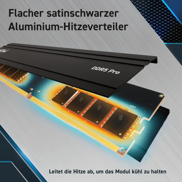 Leiten Sie die Wärme des Moduls ab und werten Sie Ihr Gaming-System mit einem trendigen, stilvollen Look auf. Mit unserem integrierten flachen Hitzeverteiler passt Crucial® DDR5 Pro DRAM sogar in kleinere PCs.