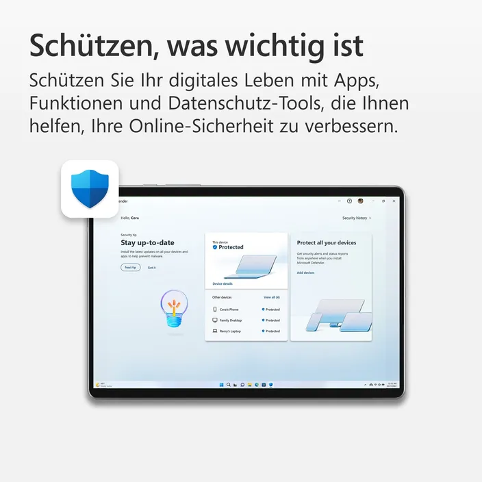 Schützen Sie Ihre digitale Welt. Erleben Sie die Sicherheit, dass Ihre E-Mails, Dateien und Fotos mit Microsoft 365 geschützt sind.