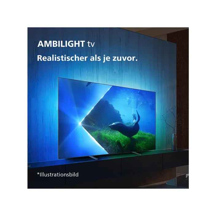 Ob Filme oder Sendungen – das lebensechte Bild und der umfangreiche Klang dieses OLED TVs sorgen zusammen mit dem beeindruckenden Lichteffekt von Ambilight für ein außergewöhnliches Erlebnis. Die dunkle Umrandung aus Metall und das rahmenlose Design sehen sehr elegant aus.