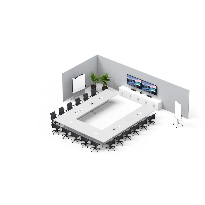 • Kabel und Komponenten bleiben jederzeit ordentlich aufgeräumt und sicher. Zwei Hubs für Tisch und Bildschirm, verbunden durch ein einzelnes CAT6-Kabel, ermöglichen eine saubere Installation