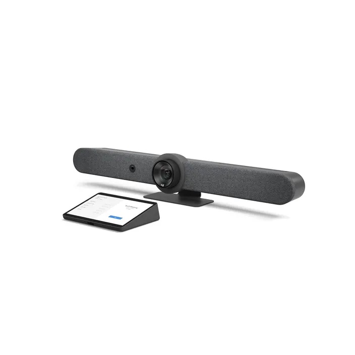 - Integrierte Komponenten: 6 Beamforming-Mikrofone, PTZ-Kamera, 2 Lautsprecher, KI-Sucher, Kabelführungs- und -aufbewahrungssystem, Tischstativ, Logitech CollabOS-Plattform